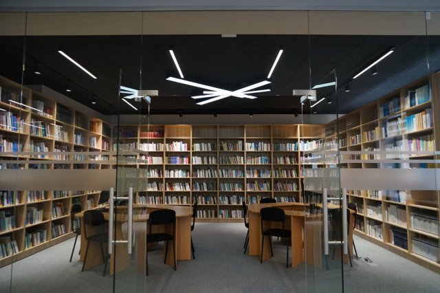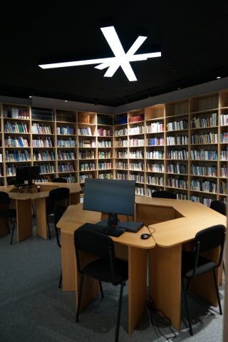 - Чітке зонування простору: створено зону тиші для зосередженої індивідуальної роботи, комп’ютерну зону для навчання та досліджень, і сцену для лекцій, дискусій, презентацій і культурних подій