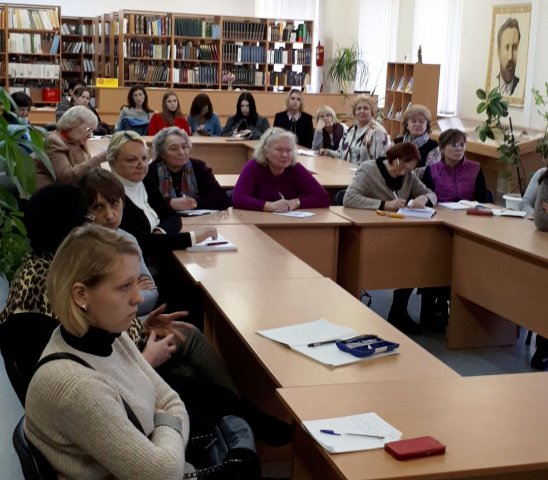 Учасників заходу: шкільних бібліотекарів та бібліотекарів професійно-технічних навчальних закладів м.Києва, наукових співробітників Педагогічного музею України, викладачів та студентів ІІІ курсу кафедри бібліотекознавства та інформології привітала директор бібліотеки Т. С. Опришко, кандидат наук із соціальних комунікацій.