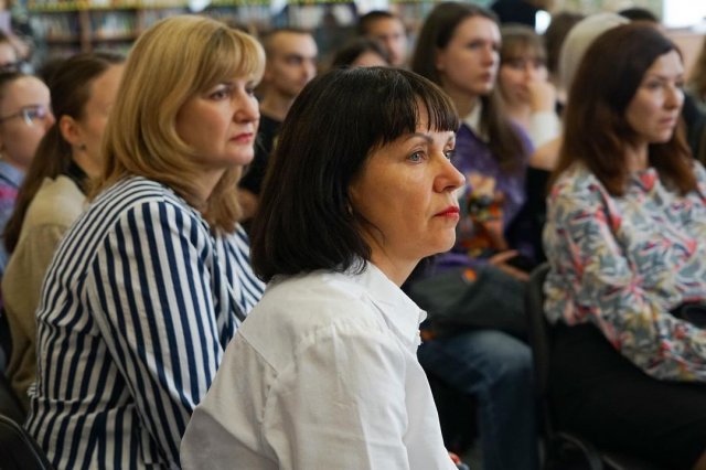 З вітальним словом та модератором заходу виступила директорка бібліотеки, кандидатка наук із соціальних комунікацій Тетяна ОПРИШКО. У своєму виступі вона презентувала книжкову виставку видання «Заборонити рашизм» в бібліотеці Університету, головні напрацювання у створенні сайту видання https://banruscism.kubg.edu.ua, зокрема, викладення повного тексту у відкритий доступ та аудіозаписів окремих розділів книги. Поділилася планами на майбутнє про створення англомовної версії сайту тощо.
