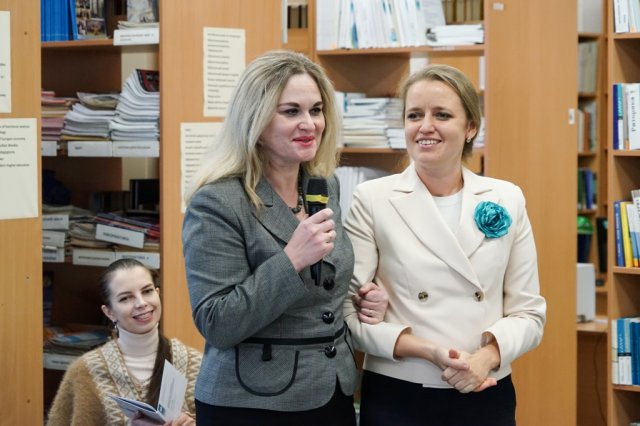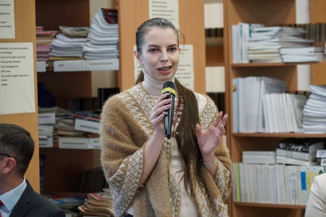 Модератором заходу виступила директорка бібліотеки Університету, кандидатка наук з соціальних комунікацій Тетяна ОПРИШКО. У своїй доповіді вона розповіла про наукову діяльність Бібліотеки, зокрема, в галузі обробки, збереження та оцифрування стародруків, створенні цифрової бібліотеки, укладанні лексикографічних колекцій. Окрему подяку висловила присутнім на заході меценатам бібліотеки – Ганні РОСЕНКО та Сергію НОЧОВКІНУ, які з 2017 року подарували Бібліотеці більше тисячі рідкісних та цінних видань. Під час заходу Ганна та Сергій поповнили колекцію стародруків декількома виданнями та продовжили добру традицію підтримки Бібліотеки.