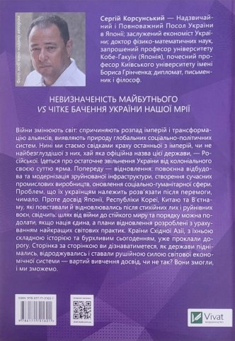 У книзі оприявлено ґрунтовні знання автора про країни Сходу та роздуми щодо шляхів відновлення України після виснажливої війни. Досвід повоєнних Японії, Кореї, Китаю та В’єтнаму свідчить про те, що успішне відновлення можливе лише за умови врахування найкращих світових практик. Проте жоден іноземний досвід не матиме бажаного ефекту без урахування реальної ситуації у воюючій країні та її національних особливостей. Кожен із семи розділів книги присвячений детальному огляду історії повоєнної відбудови та розвитку семи країн, постраждалих від війни на Сході, а також їхньої взаємодії з країнами-партнерами та США. Кожна з країн знайшла свій унікальний шлях повернення до цивілізованого існування. Автор книги дає десять порад для успішного відновлення України, з-поміж яких варто виокремити найвагоміші – правильний вибір партнерів, довгострокові стратегічні цілі та безумовна консолідація нації довкола своєї країни – України.
