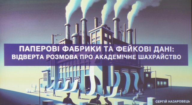 До Всесвітнього дня науки в ім’я миру та розвитку 5 листопада 2024 року в Київському столичному університеті імені Бориса Грінченка відбулася відкрита лекція старшого наукового співробітника бібліотеки, кандидата наук із соціальних комунікацій Сергія Назаровця «Паперові фабрики та фейкові дані: відверта розмова про академічне шахрайство», організована бібліотекою університету. Модерувала захід директор бібліотеки, кандидат наук із соціальних комунікацій Тетяна Опришко.