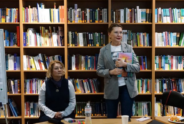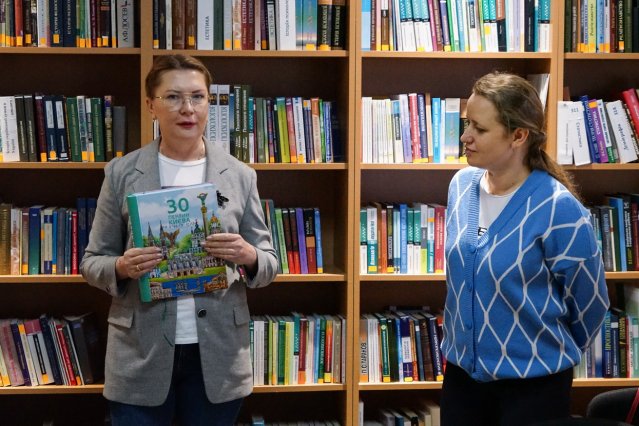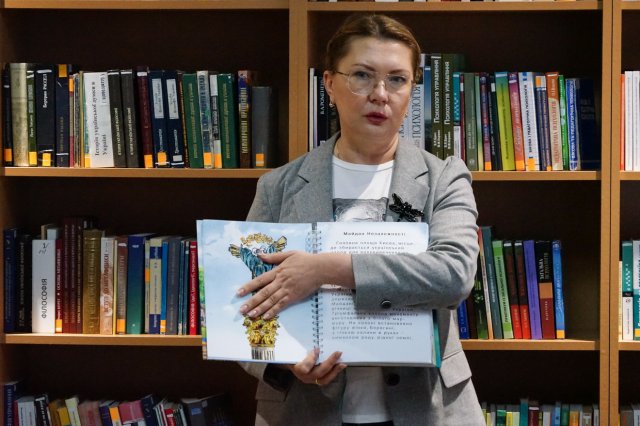 Насамкінець проректор Алла ШЛАПАК подарувала бібліотеці унікальну книгу – «30 перлин Києва» шрифтом Брайля, надруковану у 2024 році на замовлення Управління туризму та промоцій виконавчого органу Київської міської ради (Київської міської державної адміністрації).