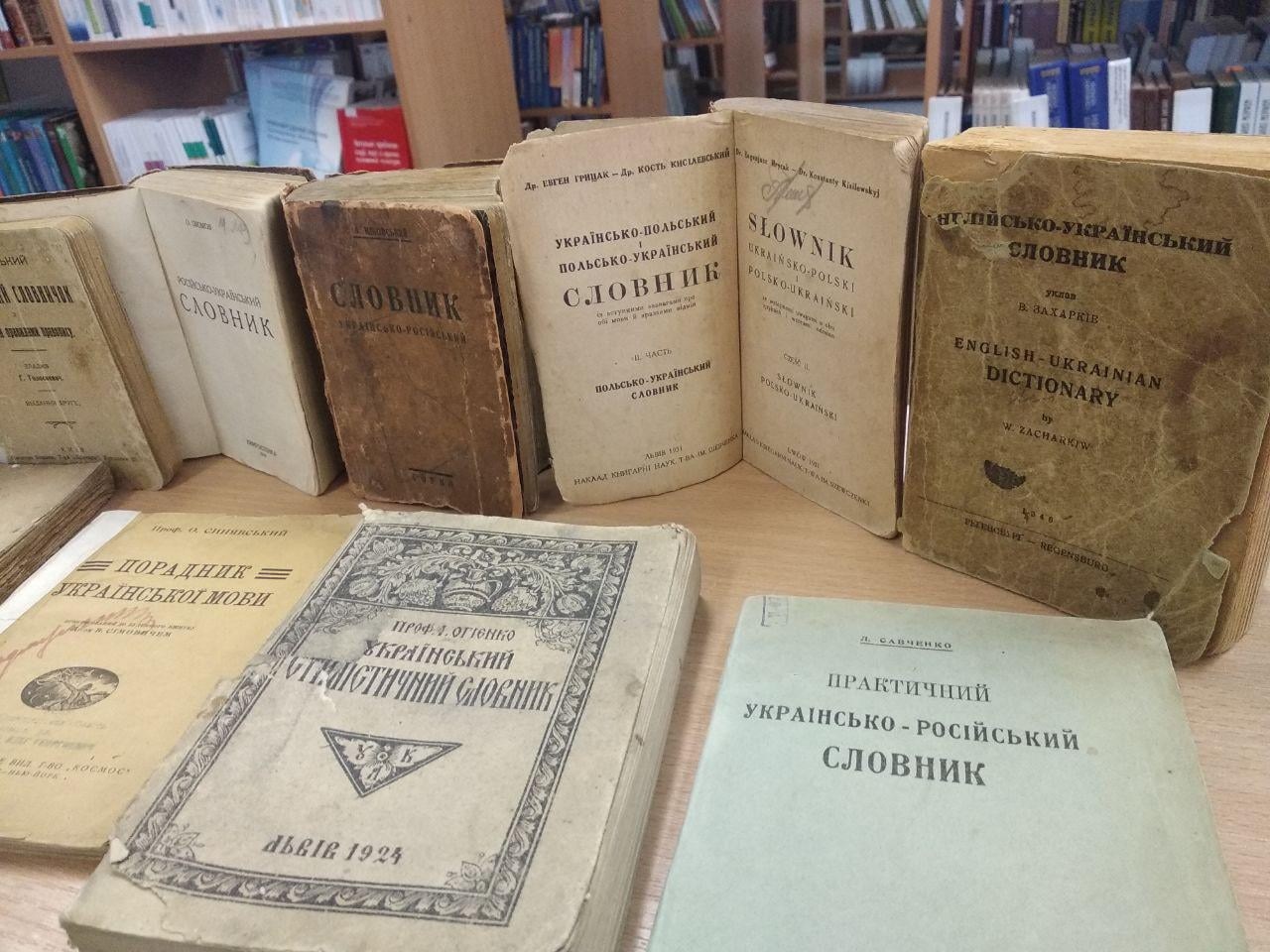 У бібліотеці КУБГ знаходиться велика кількість рідкісних видань. Перлиною цієї колекції є словники української мови. Ця виставка допоможе кожному користувачеві ознайомитись з різноманітними словниками рідної мови, дізнатися у яких роках вони були видані та ким упоряджені.
